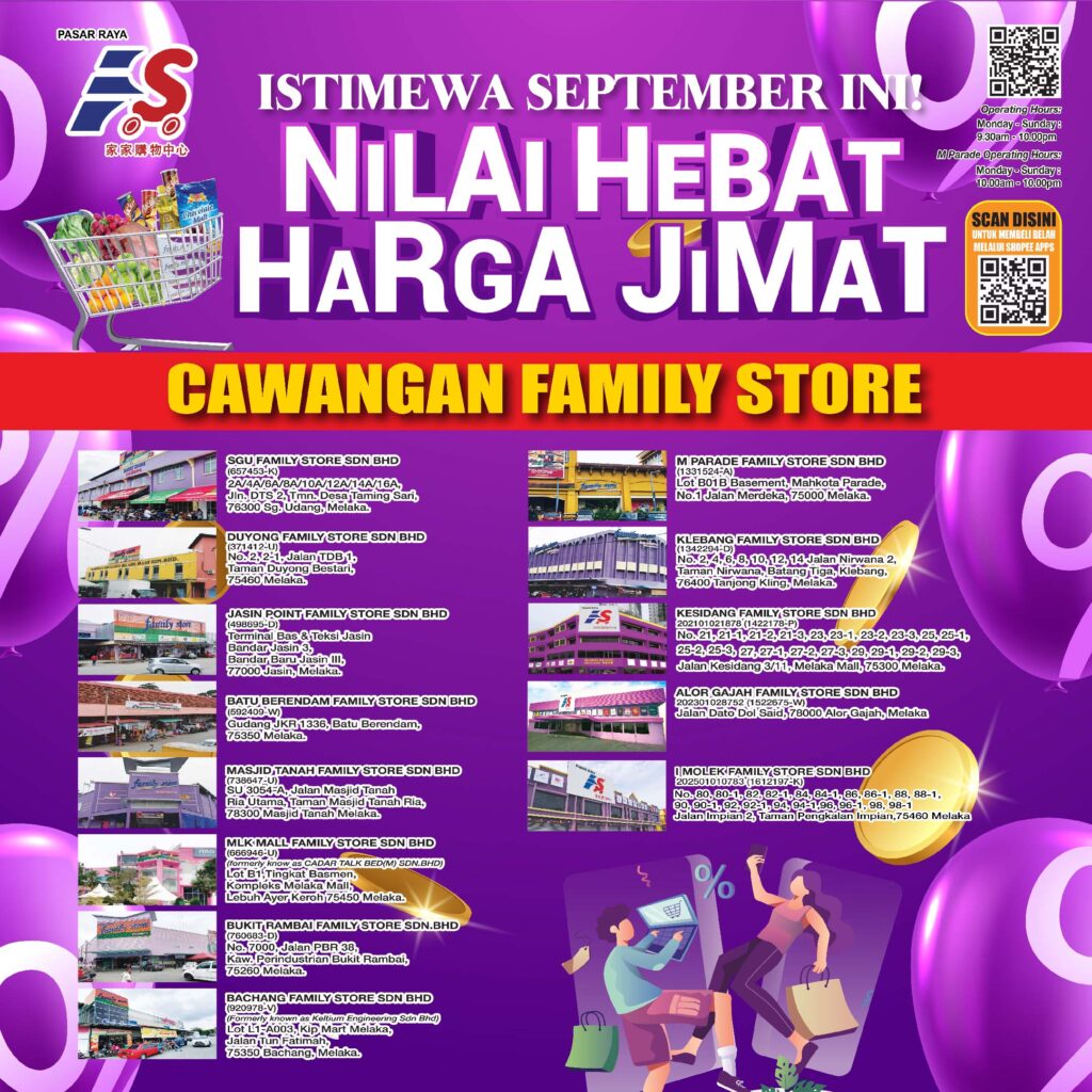#FamilyStoreMelaka #PromosiHebat #BarangMurah #PromosiSeptember #3HariIstimewa #10HariIstimewa #JimatBerganda #BelanjaBijak